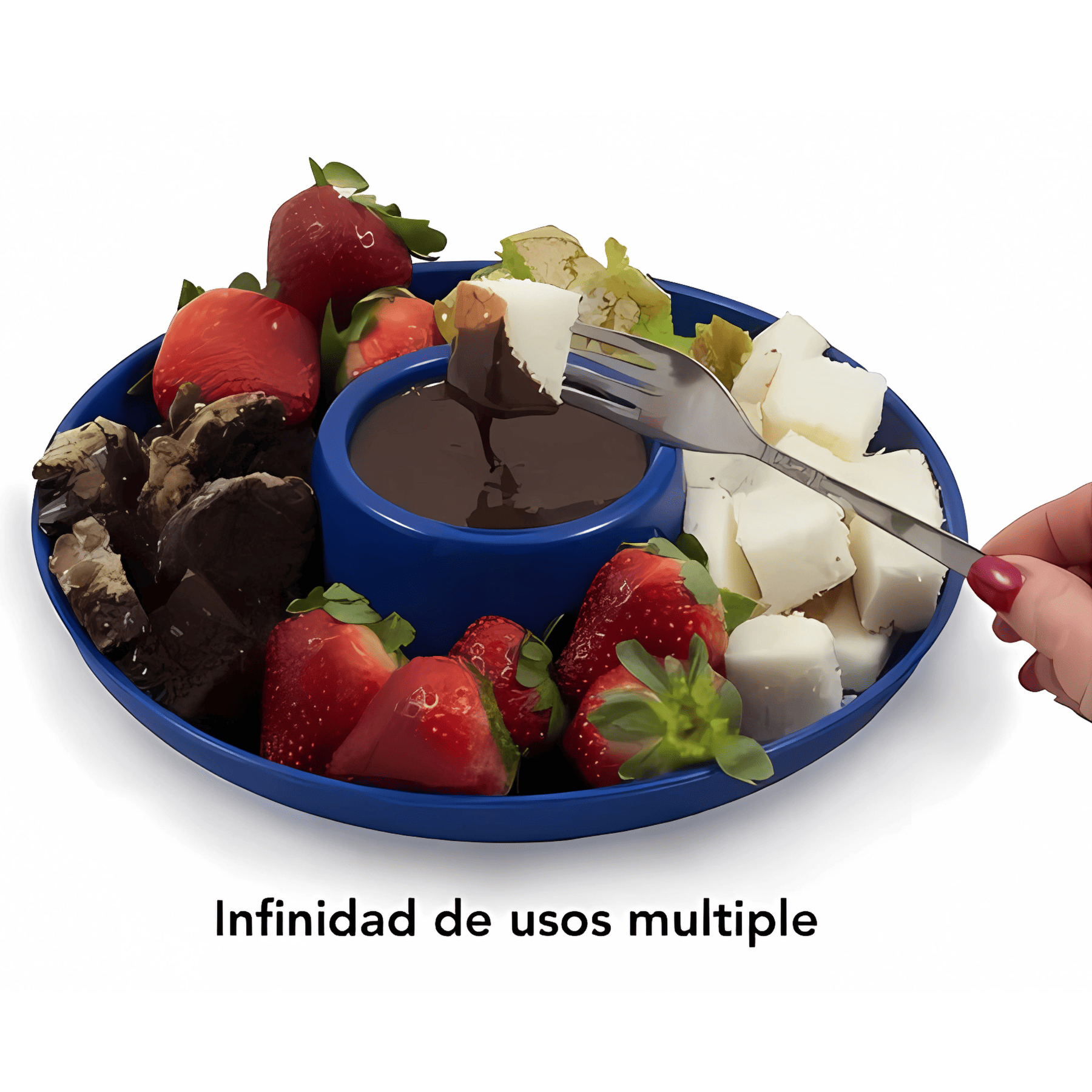 - Diseño redondo con bordes elevados para mayor comodidad y seguridad al servir.